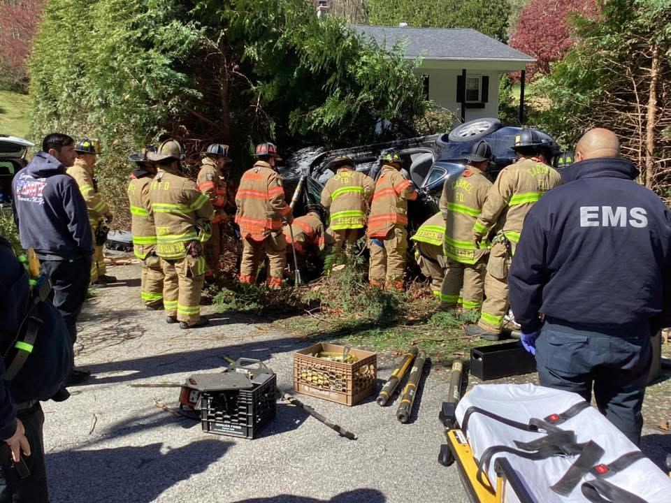 First arriving Carmel police units quickly updated there was no structure fire, but there was a vehicle on its side with the subject still stuck in the vehicle.