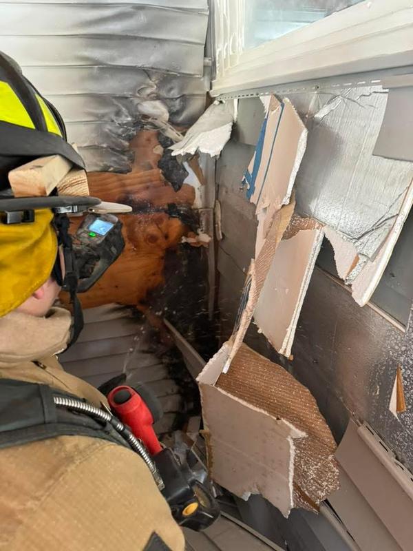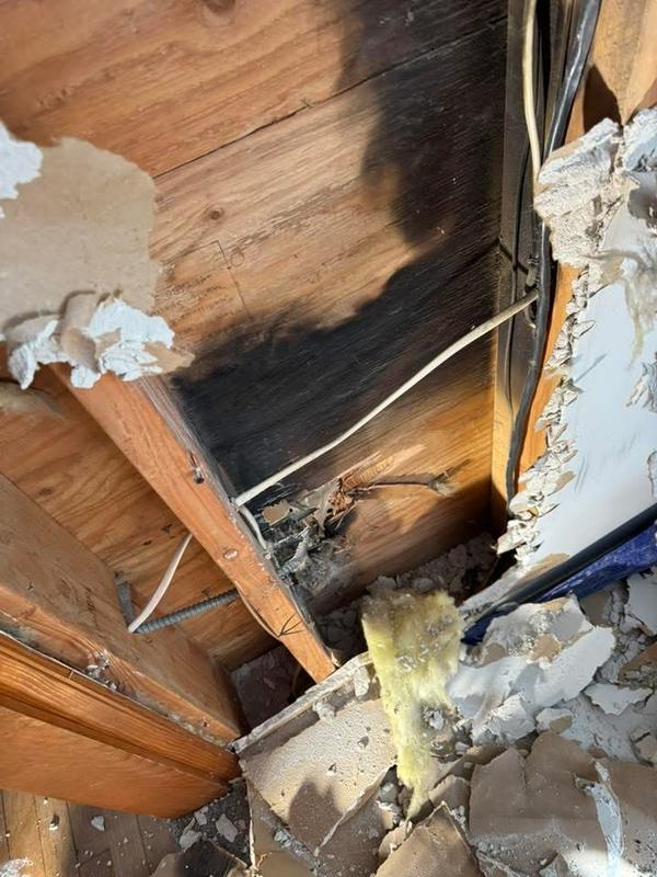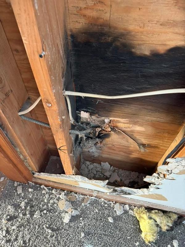Companies located an electrical issue which caused fire to spread on external siding in a sunroom area and extended within the stud bay of the wall to the adjacent bedroom wall.